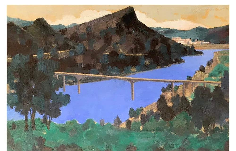 杨国荣《乌东德库区龙街渡新貌》布面油画140×100