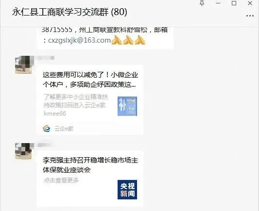创建一个网络交流平台 ▼ 新时代民族网讯 (李雪敏 民族时报记者陈明海)建立永仁县工商联学习交流微信群,群成员涵盖县工商联执委、乡镇商会主要成员、光彩事业促进会领导班子共80人,设定信息内容发布审查机制,及时推送理想信念教育学习内容100余条,引导舆论,搞好宣传教育。 建立一个社情民意专报 ▼ 反映涉及民营企业的社情民意信息,严格审核调研,及时向县委、县人民政府反映社情民意,并建立跟踪问效机制,确保落实。目前,社情民意专报已上报7期。