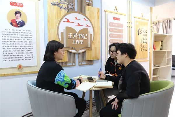 桃源社区王芳书记正在工作室中开展工作 创新社区服务模式,撑起服务各民族同胞的“惠民伞” 始终坚持以人民为中心的发展思想,把各族群众对美好生活的向往作为奋斗目标,不断创新工作举措,以温馨服务全面推进“互嵌式”和谐家园建设,促进各民族像石榴籽一样紧紧抱在一起。 加强网格化治理。社区建立起网格体系,由党员担任楼栋长、网格员,形成以党组织为核心、党员为前端、覆盖至楼栋、结对到住户的横向到边、纵向到底的网格化服务管理格局。平日里,党员佩戴党员徽章、亮明身份,在社区各路段各楼栋开展治安巡逻、卫生督查、矛盾纠纷调解等工作,确保民族政策宣传到位、社情民意反馈及时、联系各族群众更加紧密、协商共治卓有成效。把可能引发重大治安问题、群体性事件的矛盾纠纷作为排查重点,确保“抓早抓小”,推动日常问题在一线得到解决。 加强精细化服务。在社区便民服务中心内增设民族政策法规服务窗口,不分户籍属地为各族居民提供创业就业指导、劳动技能培训、社区医疗服务、法规政策宣讲等服务,确保少数民族流动人口在创业就业、就医就学、教育培训、社会保障、法律维权等方面,与本地户籍居民享受同政策、同待遇,不断增强各民族对中华民族大家庭的认同感、归属感、幸福感。充分发挥社区“大党委”资源共享优势,深入开展“党建引领+民生小实事”活动,不断把党史学习教育成果转化为“我为群众办实事”实践活动,通过常态化入户走访,收集居民各类“急难盼愁”,画出民族团结进步同心圆。 形成适宜本地的矛盾调解模式。切实关注社区内各民族群众的愿望和需求。龙江社区在便民服务中心建立“多彩龙江移动服务窗口”,对于弱势群体和重点人群,广泛开展“上门服务”;面对矛盾纠纷,社区工作人员坚持“团结、稳定、理解”的原则,妥善化解各种矛盾;桃源社区依托“王芳书记工作室”党建品牌,深入群众、深入街头巷尾,将党的关怀和民族政策照进千家万户。每月深入餐馆、企事业单位和住户访民情、询民意、解民忧。 完善社区服务条件及设施。社区图书室收集各民族书籍,给社区各族居民提供免费看书场所,方便大家了解各民族文化知识,满足居民精神文化需求。