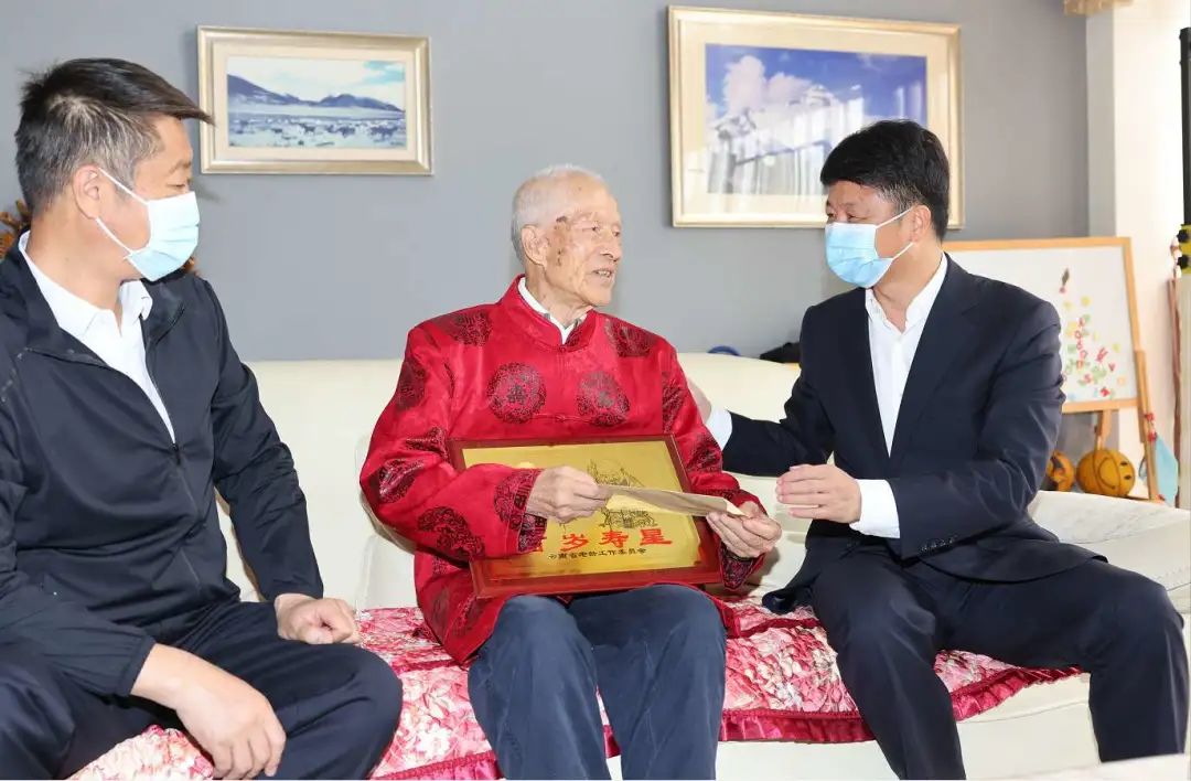 刘勇先后到左金章、李金麟两位百岁老人家中,询问老人的生活起居情况,向他们送上“百岁寿星”荣誉证书和牌匾,祝福他们健康长寿、生活幸福。看到两位老人精神矍铄、儿孙满堂。刘勇说,老人身体健康是家庭的福气,家属要悉心照顾好老人的身心,让他们颐养天年。