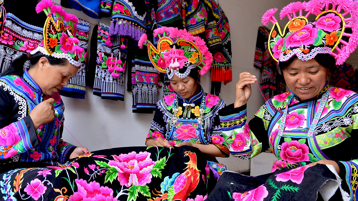 楚雄彝族自治州永仁县中和镇直苴村的彝族赛装节已有1300多年的历史,被称为“赛装之源”、中国最大的“乡村T台”。如今,赛装节已成为永仁县对外展示民族传统文化的窗口,以赛装节为平台,永仁彝绣产业得以崭露头角。  近年来,以永仁赛装节为宣传推广平台,在当地政府的扶持下,永仁县的绣娘们纷纷成立彝绣产业专业合作社,吸纳低收入妇女到合作社务工,绣娘们背着娃、绣着花,在家门口就能实现就业增收。一大批彝绣企业如雨后春笋般蓬勃发展,永仁阿妹妮若彝绣有限公司就是其中的一家。靠设计制作独具特色的彝绣旅游产品,公司每年实现销售收入近100万元。公司负责人李丽凤是永仁出了名的刺绣带头人,也是永仁彝绣产业协会秘书长,她说:“小时候没有玩具,母亲就给我们针线玩,在耳濡目染中,我们从小就学会了刺绣,从没想过传统技艺如今成了致富产业。”据悉,该协会已吸纳会员330多名,15家企业和3家专业合作社实现抱团发展,带动全县4000余名绣女共同致富,人均增收1万元。