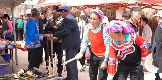 当天,两县各地的商家早早便来到腊湾,摆起“十里长街”,叫卖衣服鞋子、生产农具、小吃美食。腊湾、新民两地群众也穿着精心准备的民族服饰前来欢度节日。在此起彼伏的叫卖声中,他们一边精心挑选心仪商品,一边和商家要价还价。