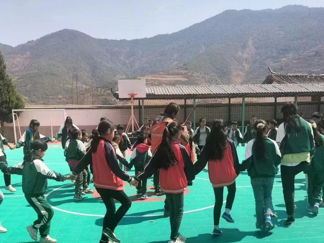 3 月 10 日下午,在永仁县中和镇直苴小学操场上,州级赛装节非遗传承人李林安用自己制作的葫芦笙弹唱着,县级彝剧非遗传承人李鹏桂拉着孩子们的手把他围在中间,跟随彝族音乐热情“打跳”。李林安和李鹏桂结合自身所学,用生动的教学形式,教导孩子们认识和学习自己的民族文化,传递、传承和传播优秀非物质文化遗产火炬。