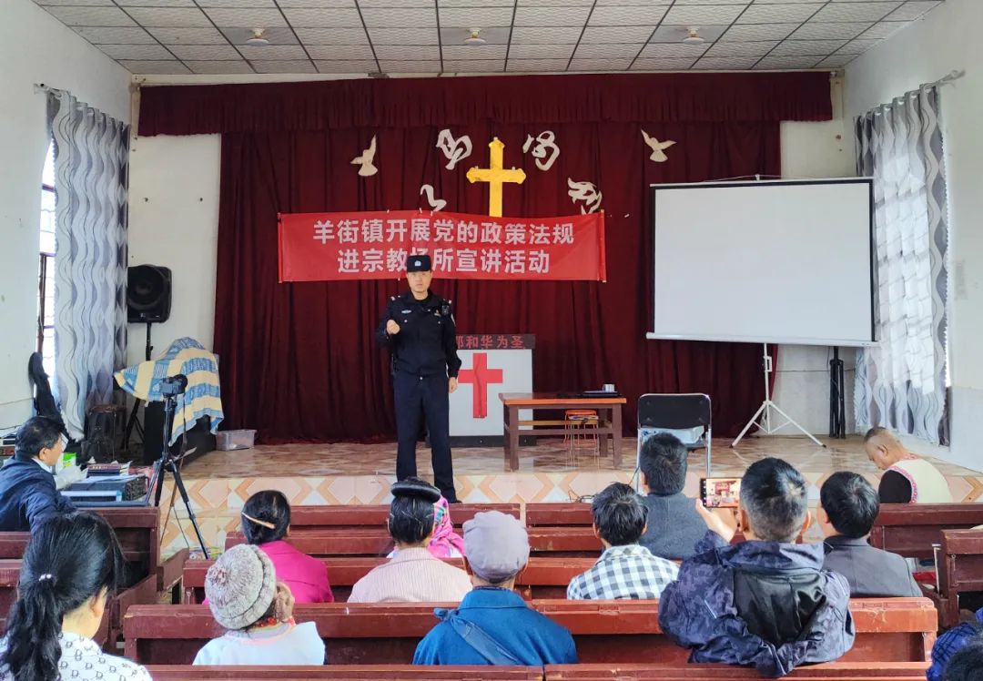 新时代民族网讯(民族时报记者 陈明海)为进一步落实普法强基补短板专项行动,切实提高宗教管理人员和信教群众的法治意识,引导信教群众尊法学法守法用法,依法依规开展宗教活动。4月2日,元谋县公安局羊街派出所联合镇司法所工作人员到辖区宗教场所开展普法强基补短板专项行动进教堂宣讲活动。