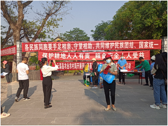 4月9日,元谋县在金马坊启动“全面深入学习贯彻党的二十大精神 ,铸牢中华民族共同体意识,高质量创建全国民族团结进步示范县”为主题的民族团结进步宣传活动,全县57家单位210人参加了此次宣传活动。