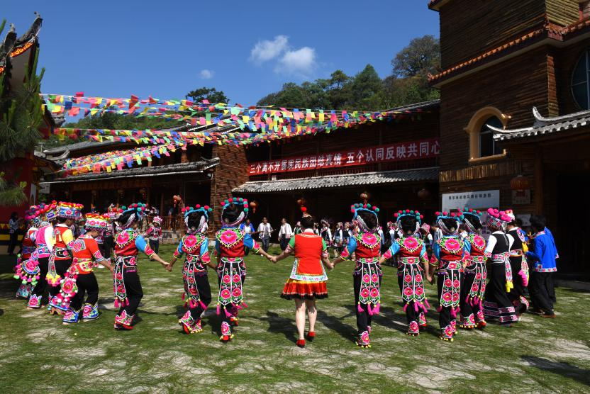 新时代民族网讯(民族时报记者陈明海)南华咪依噜风情谷位于楚雄州南华县城以北10公里处的龙川镇岔河村,地处南华与姚安、牟定三县交界处,是一个风景秀丽、民族风情浓郁、彝族文化底蕴深厚、民俗民间文化保持完好的少数民族聚居区,是中国第一批少数民族特色村寨,被南华人称为“神秘彝寨”。近年来,南华县高度重视民族地区经济社会发展,积极通过民族团结进步示范创建让该村产业旺起来、环境美起来、各族群众钱包鼓起来、精神世界“丰富起来”。