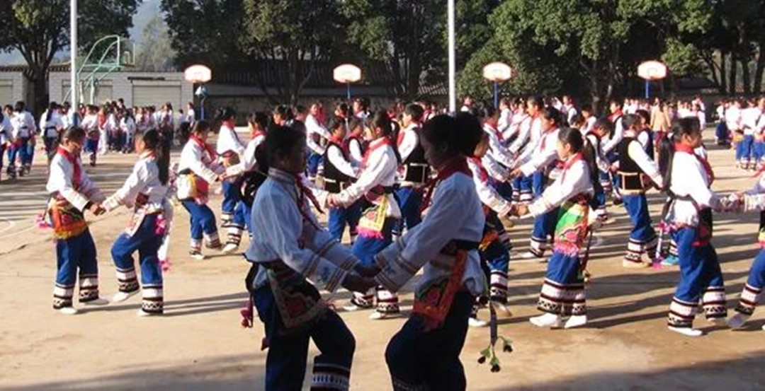 宜就镇地处彝族聚居区,我们的孩子在祖辈的熏陶下,经历一代又一代的传承,不仅能歌善舞,还对彝族左脚舞情有独钟。“羊皮马褂绣花鞋,打跳直至鸡报晓”。当熟悉的旋律在耳旁萦绕,当轻快的节奏在身边响起,在阳光下,在微风中,全校师生一起跳起欢快的彝族左脚舞。