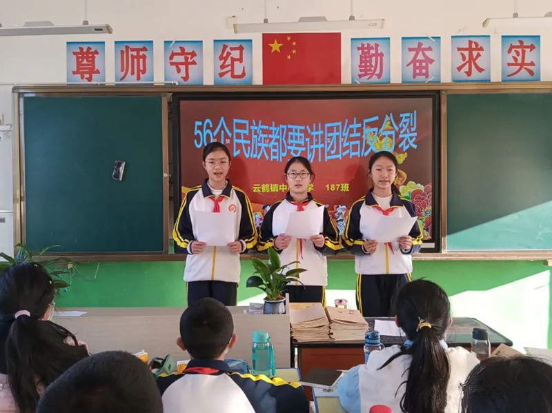 3月以来,鹤庆县云鹤镇中心小学开展了“中华民族共同体意识进教案”活动。以课堂教育为主渠道,集思广益,结合各科教材,制定了形式多样、内容丰富的中华民族共同体意识教育活动教案,在全体师生中先后开展了“56个民族——讲一讲、比一比、考一考”、“56个民族经济日新月异”等课堂教学活动。 作为“56个民族都要讲团结反对分裂”活动的小主持人,云鹤镇中心小学186班学生李东泽说:“‘讲团结反分裂’这一话题是中华民族伟大复兴的关键所在,不论什么时候,它都是时代的主旋律。在学校生活中,我们要做到言行一致,把铸牢中华民族共同体意识的精神落到实处。”