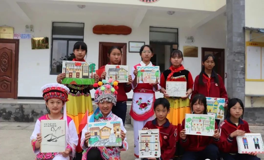 民族团结同朗诵 “团结一起力万均,互尊互爱一家亲……”,在记忆馆前,同学们齐声诵读《家和万事兴》,讴歌了浓浓的民族团结情谊和祖国大家庭的温暖,体会各民族在一起相亲相爱的浓浓亲情。现场教育感染的力量,通过铿锵的语言和昂扬的精神,激发了学生的爱国情感,增强民族自信心,不断铸牢中华民族共同体意识,有力推进民族团结工作走深走实。 民族团结美如画 杨梅树是一个美丽宜居的民族村寨。有民族团结的幸福路、滇缅公路文化遗址、丰富多彩的民族文化,围绕铸牢中华民族共同体意识主线,组织学生开展以“民族团结美如画”为主题的采风活动。同学们精心创作,认真绘画,绘制出一幅幅美丽的作品,用画笔展示出自己对民族团结进步的认识和争做新时代好少年的决心。一幅幅画描绘了新时代各族人民像“石榴籽”一样亲如一家、共同发展的团结、和谐画面。