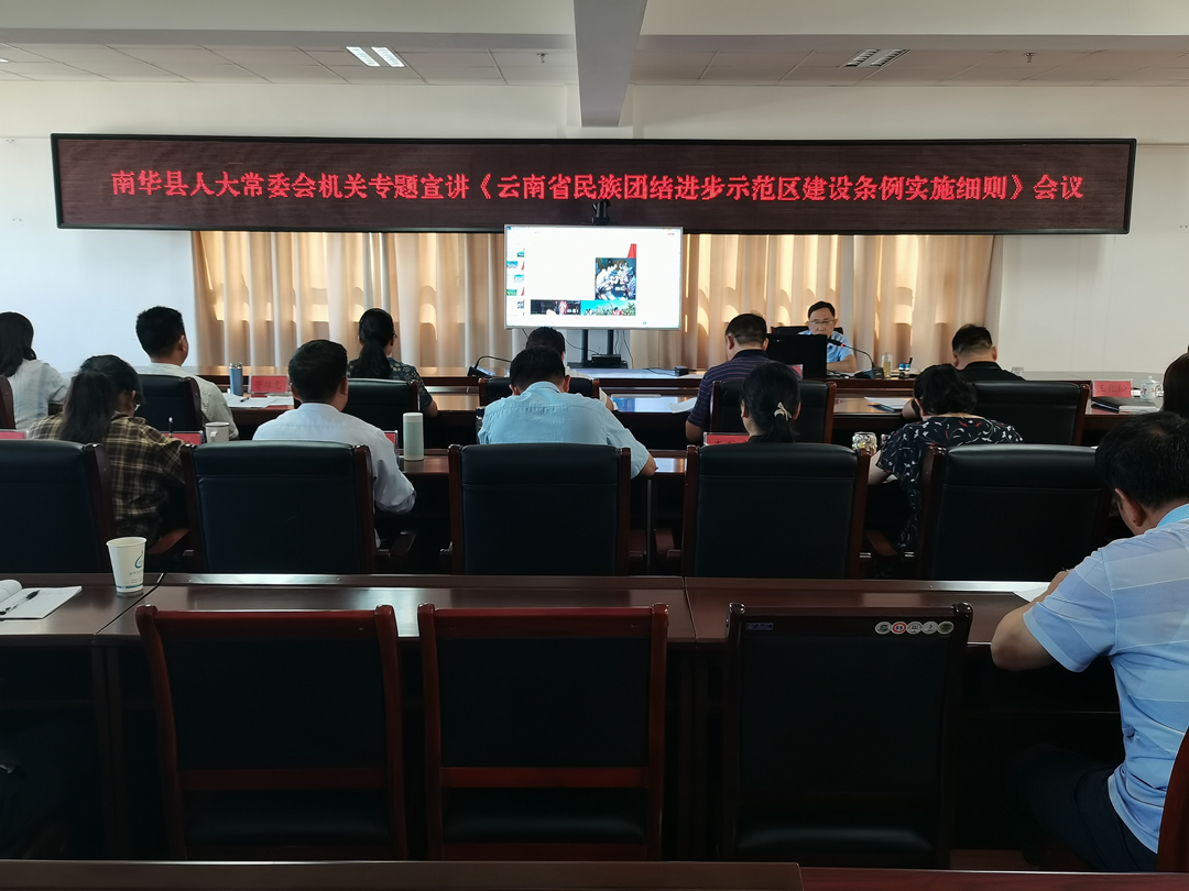 新时代民族网讯(周嵘、鲁建兰 民族时报记者 陈明海)5月30日,南华县人大常委会专题召开《云南省民族团结进步示范区建设条例》及《实施细则》政策宣讲培训会。