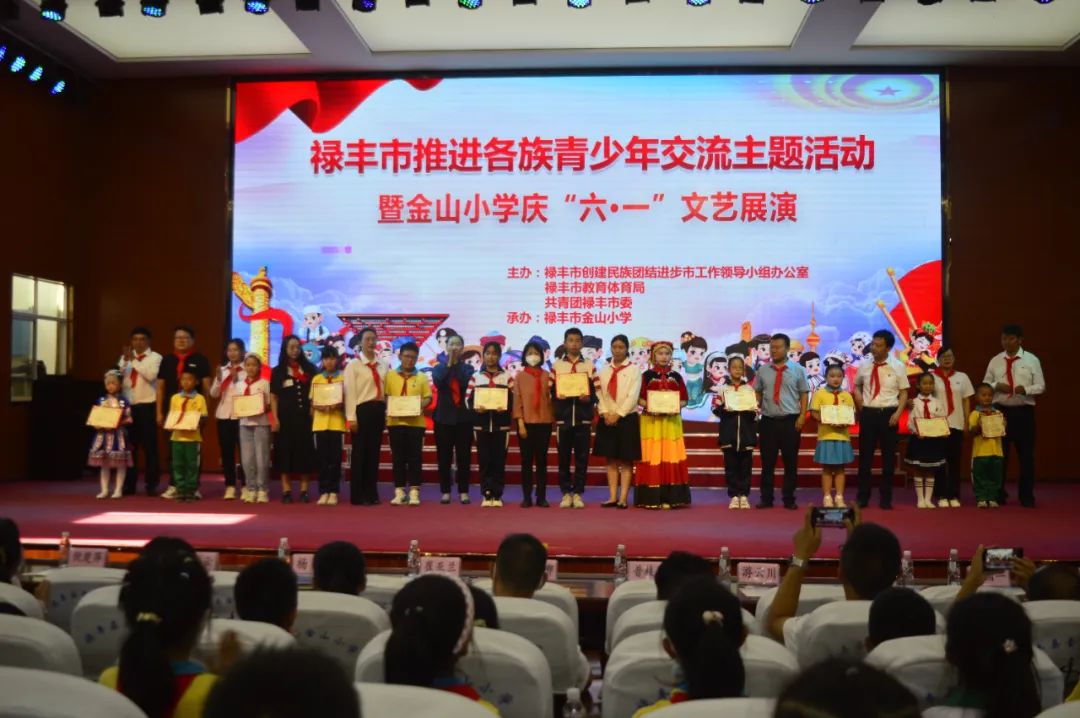 活动由部分师生代表做了发言,为获得“禄丰市民族团结好少年”的12位青少年颁发了“小石榴籽章”,精心组织开展了“中华民族一家亲·同心共筑中国梦”主题队会和“六·一”国际儿童节文艺展演活动,参加活动的全体人员畅读了《禄丰市铸牢中华民族共同体意识公约》。