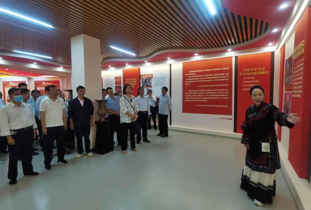 在实践教育基地,讲解员向大家介绍了有关民族团结、中华文化的经典论述,带领大家欣赏了各民族的优秀文化作品、楚雄文化遗产及民族团结进步创建工作取得的优秀成果,让大家对党的民族政策、各族群众交往交流交融事迹、全州民族团结进步示范州创建情况进行了全面了解,图文并茂的感受了各族群众和谐共融局面。