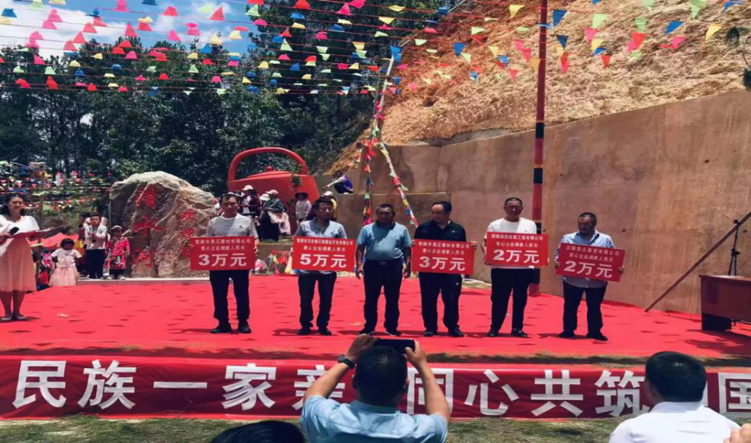 庆典现场,楚雄市发展和改革局动员“楚雄市吕合镇石鼓煤业开发有限公司、楚雄市甬江建材有限公司、楚雄市嘉正建材有限公司、楚雄诚森建筑有限公司和云南思众商贸有限公司”5家爱心企业共向西舍路清水河村委会捐赠帮扶专项资金15万元,助力楚雄市清水河村委会民族团结和乡村振兴融合发展。