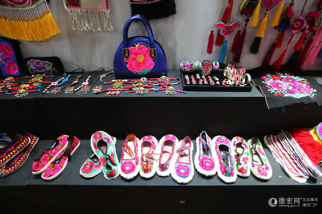(三)“非遗保护+文创开发”,彝绣产品展现新魅力。 针对传统彝绣受众有限、市场占有率低等问题,在坚持保护好非遗文化的同时,把非遗文化与时尚潮流相结合,对传统绣法进行创新,设计带有更多时代气息的绣品式样、构图,融入流行元素,让普通生活用品华丽转身为精美商品。加强与东南大学、楚雄师范学院等院校的交流与合作,结合南华县民族特色资源和民族文化,不断加大民族刺绣文化传承和产品开发力度,并依托东南大学设计团队,成立了东南大学郑德东教授民族刺绣文化创新设计工作室,设计打造一批具有南华特色、民族文化元素与实用性兼具的彝绣文创产品,促进彝绣文化创新能力,打造彝绣系列品牌。