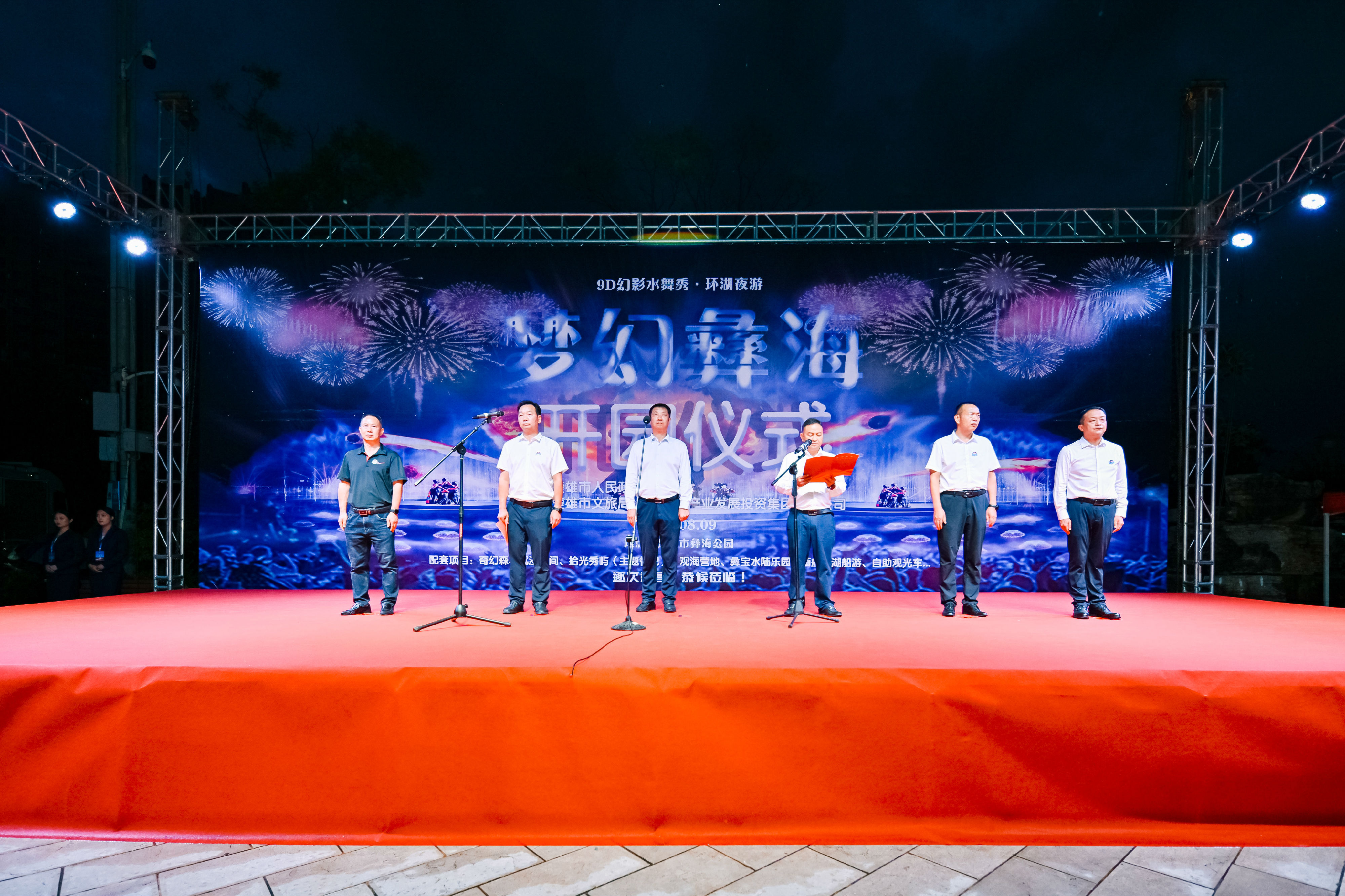 8月9日晚,“梦幻彝海”水舞幻影主题园区与“1+1+N”新文旅运营开园仪式在彝海公园同步启动。