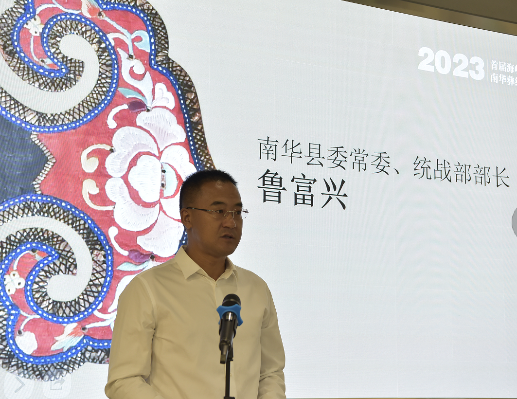 8月23日,首届海峡两岸高校南华彝绣艺术创意大赛颁奖仪式在南华县至善彝绣馆举行。县委常委、县委统战部部长鲁富兴出席仪式并致辞。