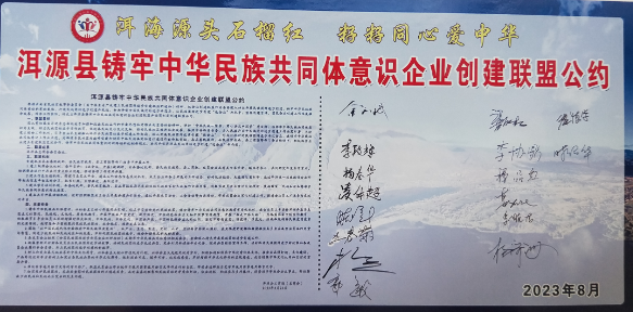 来自洱源县总商会的14家创建联盟成员企业集体签约,郑重承诺加入铸牢中华民族共同体意识联盟行动公约。这是洱源县不断拓展创建领域、深化民族团结进步进“企业”、积极探索企业在创建交流合作、铸牢中华民族共同体意识新路径新机制新模式的具体举措。