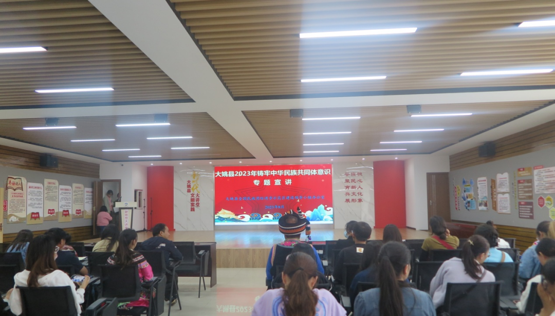 新时代民族网讯(华成敬 民族时报记者 陈明海)中华优秀传统文化是铸牢中华民族共同体意识的历史根基和思想源泉。8月25日,大姚县民族团结进步示范区建设领导小组办公室统筹县新时代文明实践中心、云南大学大姚籍返乡大学生组成的“墨云楚情”团队联合开展墨云楚情·大姚文明实践活动,专题开展铸牢中华民族共同体意识系列宣讲。活动共宣讲《中华民族共同体意识与中华优秀传统文化》《中国古代传统手势礼》《中国服装发展简史》3个课题。来自全县各乡镇、各部门的各族干部群众、各族代表人士共计160余人参加活动。