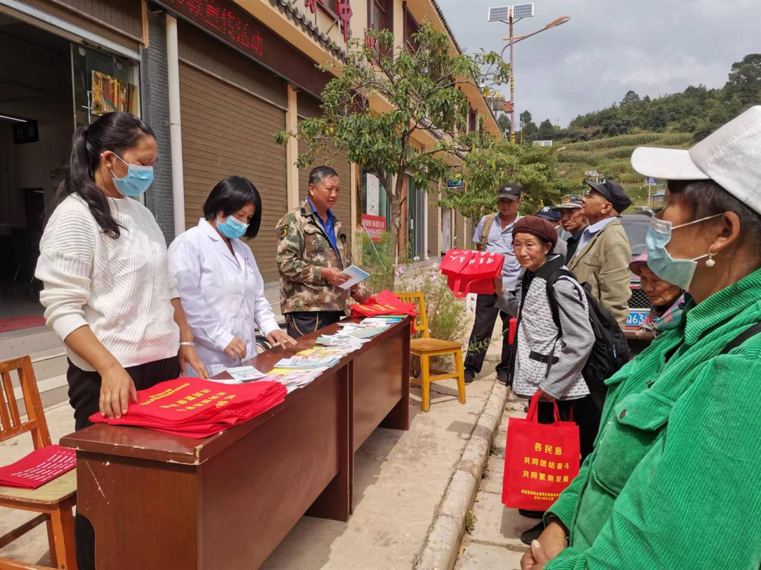 开幕式当天,在便民服务大厅门口设置民族团结进步宣传点,工作人员同各族群众宣传新时代党的民族工作,发放《云南省宗教事务条例》600余本,特制“中华民族一家亲”宣传帽400顶,铸牢中华民族共同体意识宣传折页300份,民族团结进步宣传手提袋200个。