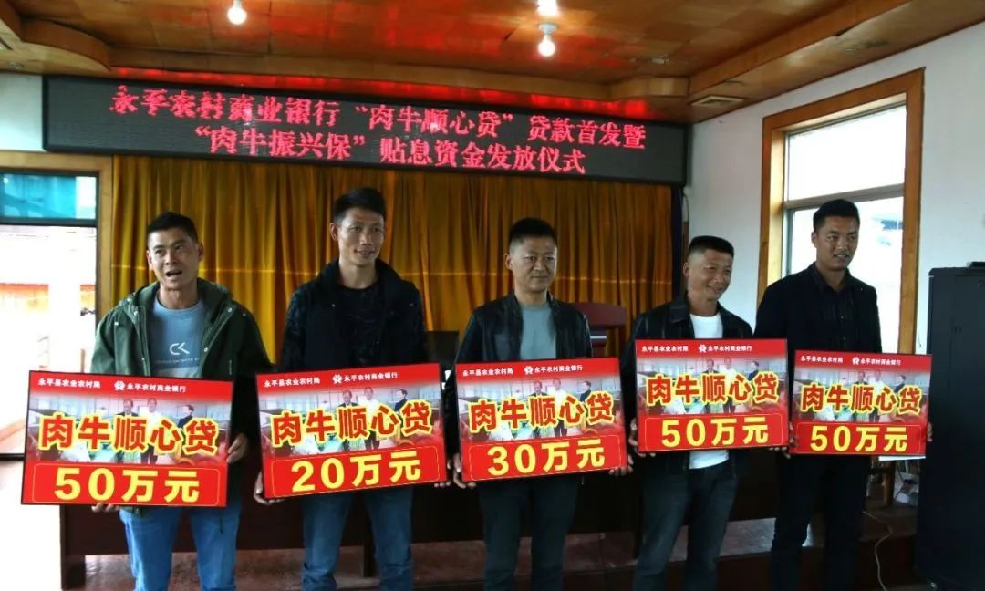 银保携手 支持肉牛产业发展 永平农商行创新推出“肉牛顺心贷”,让百姓“发牛财”。2022年10月26日,永平农村商业银行、中国平安财产保险股份有限公司大理中心支公司在龙街镇举行“肉牛顺心贷”贷款首发暨“肉牛振兴保”贴息资金发放仪式上,永平农村商业银行向龙街镇5家肉牛养殖户集中授信200万元。“在我们肉牛养殖过程中,确实存在资金困难的问题,在我们需要资金周转的时候,永平农商银行给予了我们帮助,特别是今年针对我们养牛、肉牛养殖户推出的‘肉牛顺心贷’,对我们老百姓来说,真正是一个非常实惠的贷款,贷款手续简单简化、贷款利息低。我相信在政府部门与各个单位的大力支持下,我们的肉牛养殖团队会越来越壮大,争取把我们养出来的肉牛'走'出去”。龙街镇上村下村民小组回族青年马亚彪信心满满地说道。