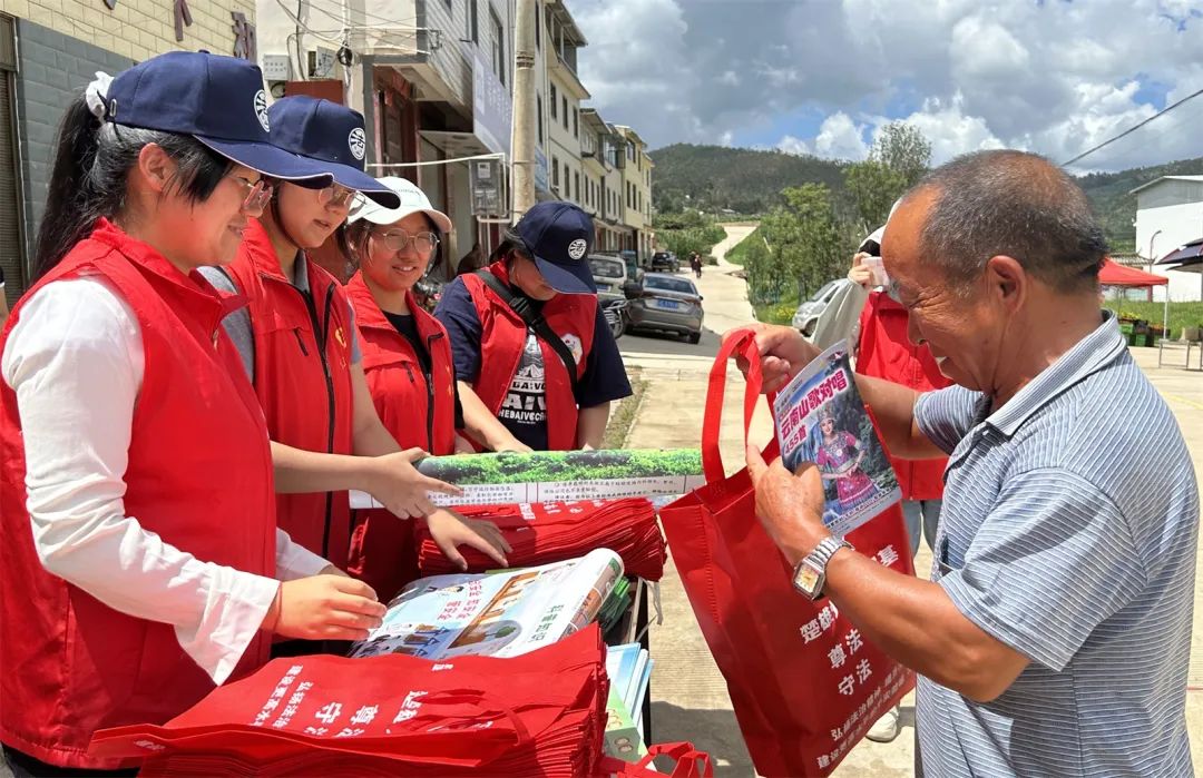 活动中,清澈高昂的歌声、积极奋进的舞步、热闹喜庆的氛围洋溢全场,吸引了各族居民群众停留观赏,衣着“红马甲”的志愿者们向前来观看演出的群众发放民族政策知识手册,宣传党的民族政策、法律法规、民族团结知识,为邻里和睦相处、促进和谐发展营造浓厚氛围。