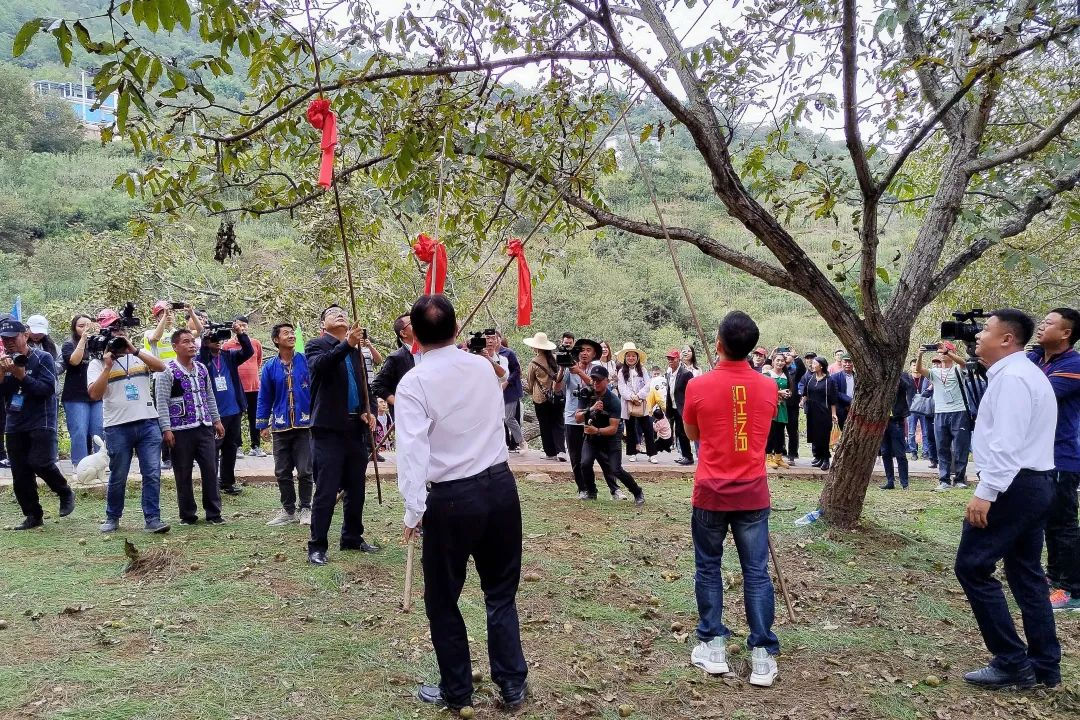 欢乐节会,异彩纷呈。9月8日,一场主题为“古树核桃认购暨大姚核桃开竿采摘仪式”在大姚县三台乡举行,正式拉开遇见楚雄·中国大姚2023核桃文化节帷幕,活动吸引了来自四面八方的游客,与大姚各族群众一道,赏核桃美景,品核桃美食,讲核桃故事,行康养之旅,扬民族文化,欢庆丰收盛会,共同分享这场核桃“盛宴”。据悉,为期近一个月的核桃文化节期间,将举办核桃美食大赛、核桃果王争霸赛、电影《幸福核桃》首映礼等系列活动,以及楚雄州核桃产业专场招商推介会、“百名网红走进核桃之乡”、云南省“水代法”生态制取核桃油成果转化(产品)推介会等配套活动。此外,9月28日还将在石羊古镇举行大姚县2023中国大姚孔子文化节“祭孔大典、汉服选拔、美食品鉴”等系列活动,深入推动铸牢中华民族共同体意识进民族节庆,全方位展示“中国核桃之乡”的独特魅力。