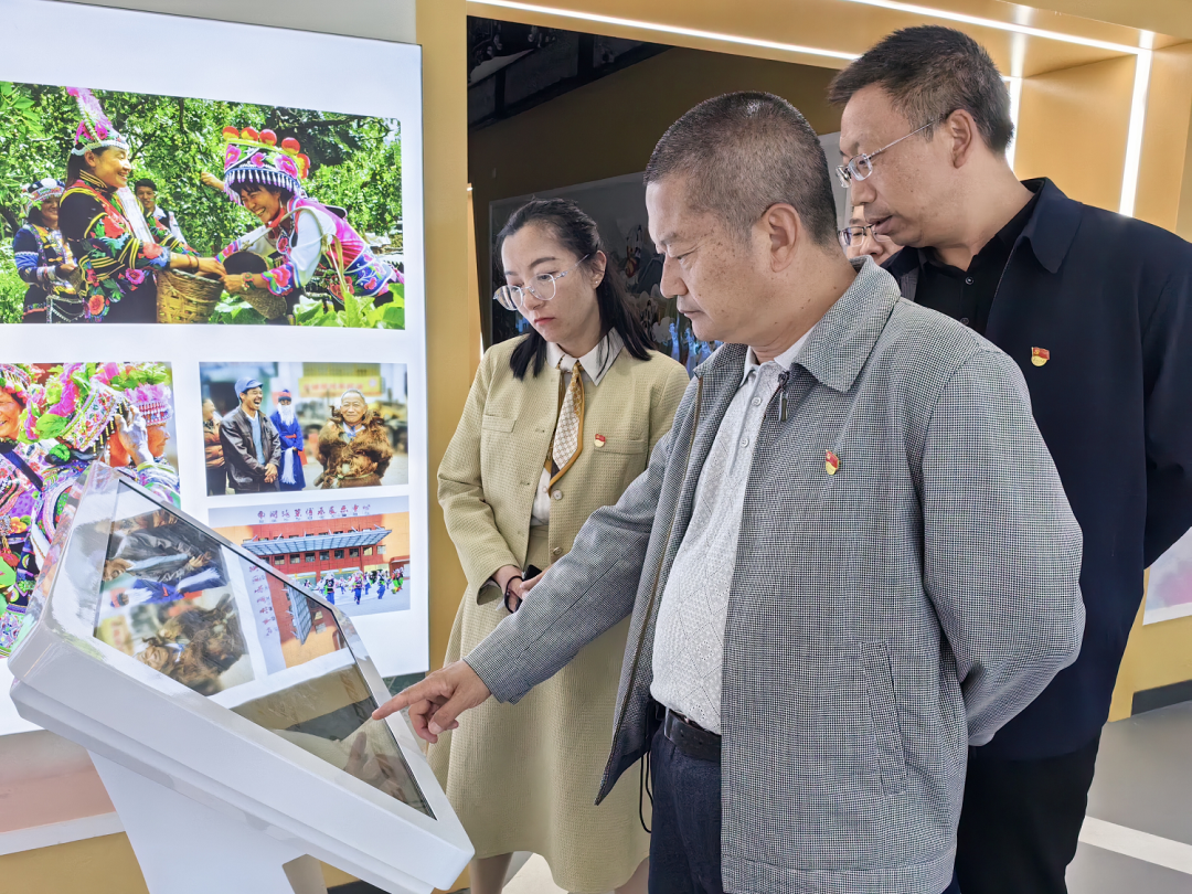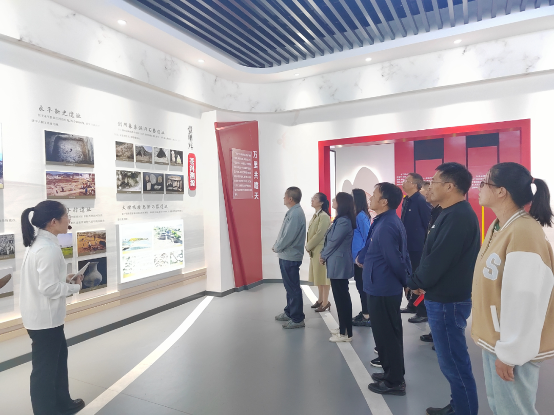 二是到大理大学参观大理州铸牢中华民族共同体意识主题教育馆。在讲解员的带领下,全体党员参观了主题教育馆序厅、万里共瞻天、红日照白州、一起向未来、尾厅五大主题展厅。参观过程中,大家认真聆听讲解及观看图片展板、影像视频、电子信息,全体党员干部深刻了解了铸牢中华民族共同体意识的大理实践,加深了对大理各族群众与全国各地各族群众交往交流交融的历史渊源及大理各民族之间文化上兼容并蓄、经济上相互依存、情感上相互亲近的生动实践的认识。