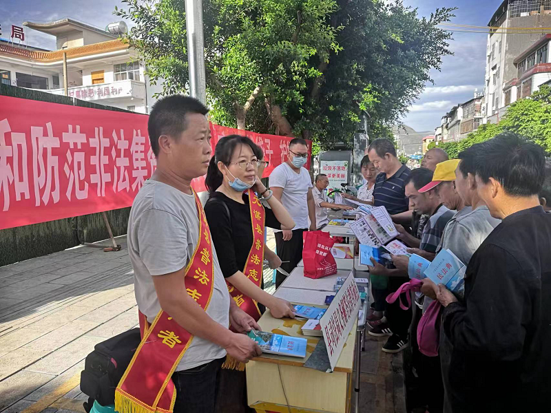 合力抓好社会矛盾排查调处 筑牢 “平安网” 坚持和发展新时代“枫桥经验”,深入推进“4+2”矛盾纠纷化解机制,构建县、乡(镇)、村(社区)、组四级大调解格局,强化人民调解、行政调解、诉前委派调解、司法调解等有效衔接,组建89个凤凰花调解室,组织法官、检察官、警官、律师(“三官一律”)进基层开展矛盾纠纷排查化解。2023年以来,共调解各类民事纠纷1614件,调解成功1607件,调解成功率达99%,极大促进了家庭和睦,邻里团结,各民族大家庭社会“平安网”不断筑牢。