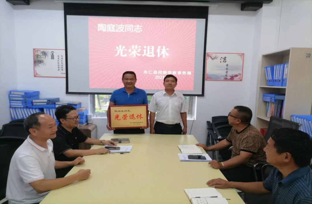 新时代民族网讯(民族时报记者 陈明海)近日,永仁县民族宗教事务局举行干部荣退仪式,欢送县民族宗教局三级主任科员陶庭波同志光荣退休。县民族宗教局班子成员、全体干部职工参与仪式。