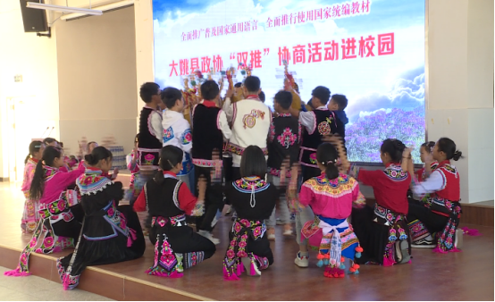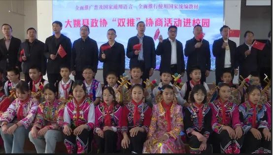 新时代民族网讯(民族时报记者陈明海)近年来,大姚县坚持把铸牢中华民族共同体意识作为各项工作的主线,将推广普及国家通用语言文字、推行使用国家统编教材作为构筑中华民族共有精神家园的重要途径和铸牢中华民族共同体意识的重要举措,大姚县政协组织开展“双推”协商进校园活动,通过“同听一堂课、同讲一席话、同唱一首歌”,教育和引导各族青少年书同文、语同音,促进心相通、情相融。