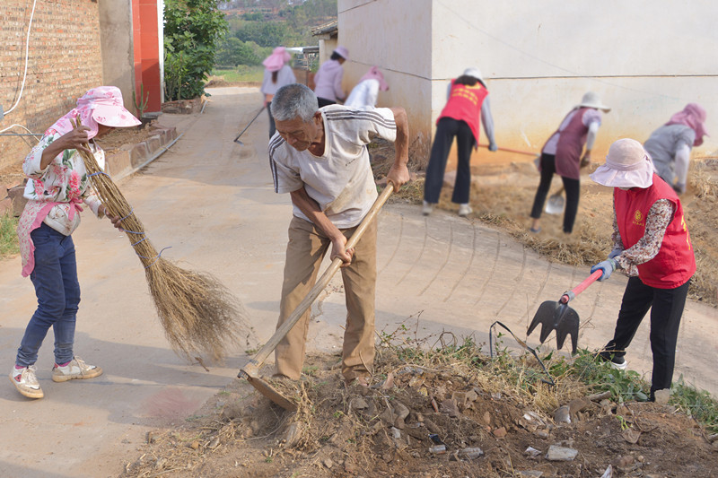 走进莲池乡查利么村,村庄四周和田野绿意盎然,在和煦的阳光下,弥漫着泥土和大自然的芳芬。一条宽4米、长960米的入村水泥路平坦干净,6条村间入户巷道清洁卫生,各户农家庭院、房前屋后整洁温馨,美丽的村庄犹如一幅色彩斑斓的画卷。 5月14日一大早,一台带有装载功能的挖掘机轰轰隆隆运行在村里,不停地向两台小四轮拖拉机清装乱堆乱放的石块、废土、残砖烂瓦和糟腐柴禾。县委党史研究室、县民族宗教事务局的16名干部和50多名村民用锄头、铁铲、镰刀、扫帚等工具,彻底铲除村间公共地段乱生乱长的杂草,全面清理村间节点杂物、细致打扫村间道路卫生。经过一个上午的共同努力,村间公共部位、道路及两侧的环境面貌焕然一新,整个村庄显得更加舒适、更加整洁、更加宜居。