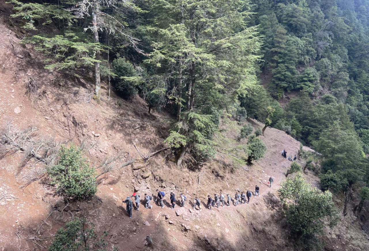 沿路上,大家纷纷拾起可见的垃圾,践行“绿水青山就是金山银山”的理念,真正把“良好生态环境是最普惠的民生福祉”放在心头、落到实处。登山道路崎岖漫长,全体人员艰辛却不失信心,各自坚持却又相互鼓励扶持,历时3个小时后,大家到达大羊窝子村,并继续往上攀登,最终登上了彝州最高峰百草岭。 在美丽的大羊窝子村,看到群山环抱下,村内洁净的青石板道路,错落有致的垛木房,成群可见的黑山羊,大家深切感受到各族群众夯实铸牢中华民族共同体意识的生态基础,以生态底色绘就民族团结的美丽画卷。