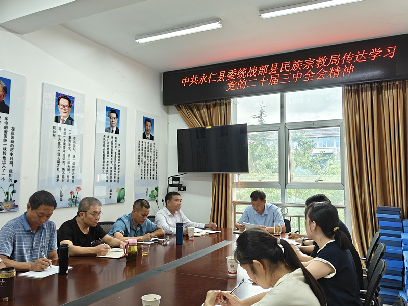 日前,永仁县委统战部县民族宗教局召开会议,深入学习贯彻党的二十届三中全会精神,确保全会精神在统战民族宗教工作实践中落地生根、开花结果。