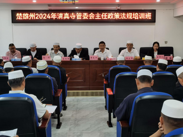 2024年8月12日至15日,楚雄州举办2024年清真寺管委会主任宗教政策法规培训班,培训围绕党的二十届三中全会、坚持我国宗教中国化和《云南省宗教事务条例》《互联网宗教信息服务管理办法》《伊斯兰教朝觐事务管理办法》等宗教政策法规开展专题辅导。
