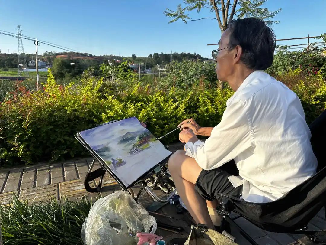 活动中,美术名家们先后深入永仁县永定老街、政务中心观景台、黉学庙、中山公园、永定河、彝绣园区等地开展采风创作活动。8月的阳光城,骄阳似火。可丝毫没有影响美术名家的创作热情,他们带着各自的画材、画具,近距离感受永仁的人文风貌,在自己心仪的采风点位沉静下来,用缤纷色彩和神笔墨韵,勾勒出一幅幅视角独特、情感丰富的阳光城美景。创作过程中,省州美术名家会同县美协骨干一起对创作作品进行点评分享,对构图、色彩等绘画细节进行传授分享。