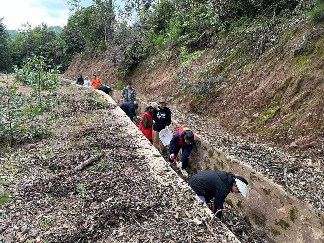 在万松山小坝,荞山村党总支组织党员干部、群众、少数民族代表人士和驻村工作队员清理沟渠,大家纷纷撸起袖子、卷起裤子,使用铁锹、锄头、铲子等工具,沿着沟渠进行清理疏通,对沟渠中的杂草、树枝、垃圾“死角”、淤泥“顽疾”、砂石等进行了全面清理,确保了引水、排水畅通。 “由于季节交替原因,沟道内杂草、淤泥较多,部分农灌沟渠、引洪沟被淤泥堵塞,影响了库塘蓄水,也削弱了水旱灾害防御能力,通过集中清理,有效提高了库塘蓄水能力,为来年丰收打下了基础。”环州乡党外知识分子张洪祥说。 此次行动共计组织150余人参与,完成河道清淤5公里,清理河边垃圾、废弃物5吨,确保了汛期沟渠排水通畅及群众出行安全,为蓄水、汛期安全提供了有力保障。