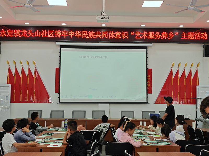 为铸牢中华民族共同体意识,深入贯彻落实习近平文化思想,推动中华优秀传统文化创造性转化和创新性发展,全面开展文化交流,丰富各族群众的精神文化生活,推动优秀文艺文化对人积极的影响,培养民族地区儿童的审美情感,用中华传统的优秀文化对儿童的认知、情感、社会交往等多方面产生积极影响,为民族地区儿童的全面成长提供坚实的基石,促进各族群众共建共享中华民族共有精神家园,推动艺术服务彝乡、服务群众。2024年8月12-14日,龙头山社区联合永仁美术家协会以及永仁县永行社会工作服务中心开展龙头山社区暑期铸牢中华民族共同体意识‘艺术服务彝乡'主题活动。