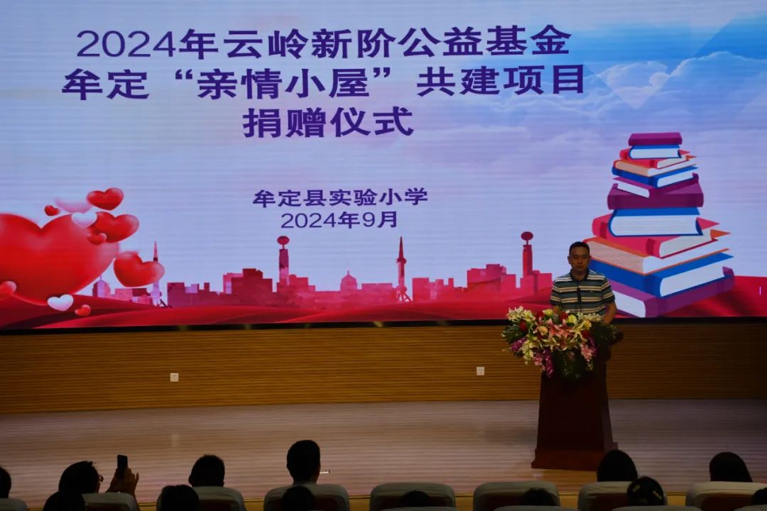 “爱,是夏日里的一束阳光,让大地热浪涌动,使人倍感温暖!” 9月4日上午,云南省新的社会阶层人士联谊会到牟定县实验小学开展“云岭新阶亲情小屋”项目捐赠活动,打造了楚雄州首个“云岭新阶亲情小屋”。捐赠仪式上,省新阶联秘书长陈磊作了讲话,省新阶层联监事长、立信税务师事务所(云南)有限公司董事长杨慧,省新阶联爱心企业——云南焕之彩传媒有限公司总经理何易涵共同向实验小学捐赠了5万元,并为两间“云岭新阶亲情小屋”揭牌。参加活动的新阶人士还与小朋友们一同开展了亲子诵读和儿童关爱服务活动,并为小朋友们发放图书、跳绳索等爱心物品,并鼓励小朋友们好好学习,祝愿他们健康成长。