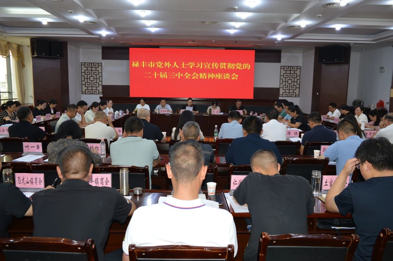 聚焦思想引领,凝聚团结奋进政治思想共识。持续开展专题宣讲活动,深入学习贯彻党的二十大精神和中央、省委和市委统战工作会议精神;召开座谈会,学习宣传贯彻党的二十届三中全会精神,引导全市2800余名副高级职称以上党外知识分子及时把思想统一到党中央和省、州、市党委的决策部署上来,学以致用,围绕推进全面深化改革献计出力,为推动全面深化改革向纵深发展凝聚思想共识、汇聚强大合力,为助力禄丰经济社会高质量发展凝聚思想共识。