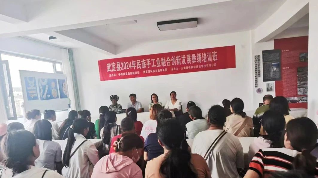 为进一步推动民族手工业的融合创新发展,提升彝绣技艺,传承与保护传统文化,推动地方经济发展、促进文化交流与融合,9月10日,武定县2024年民族手工业融合创新发展彝绣培训班在狮山镇狮山大道广场雄冠彝绣厂开班,武定县委统战部副部长、县民族宗教局局长苏兴禄出席开班仪式并作了动员讲话。