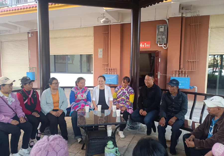 10月15日,县委常委、县委统战部部长李美琼到金碧镇指导工作。 李美琼一行深入金龙社区易地扶贫搬迁集中安置点小康苑小区,详细了解促进各民族交往交流交融、嵌入式社区环境、城市社区民族工作等情况,向小区各族群众宣讲习近平总书记在全国民族团结进步表彰大会上的重要讲话和给普洱民族团结誓词碑盟誓代表后代重要回信精神。听取小区各族群众从乡镇搬迁到县城以来,在住房、就学、就医、就业、生活环境等方面发生的巨大变化。