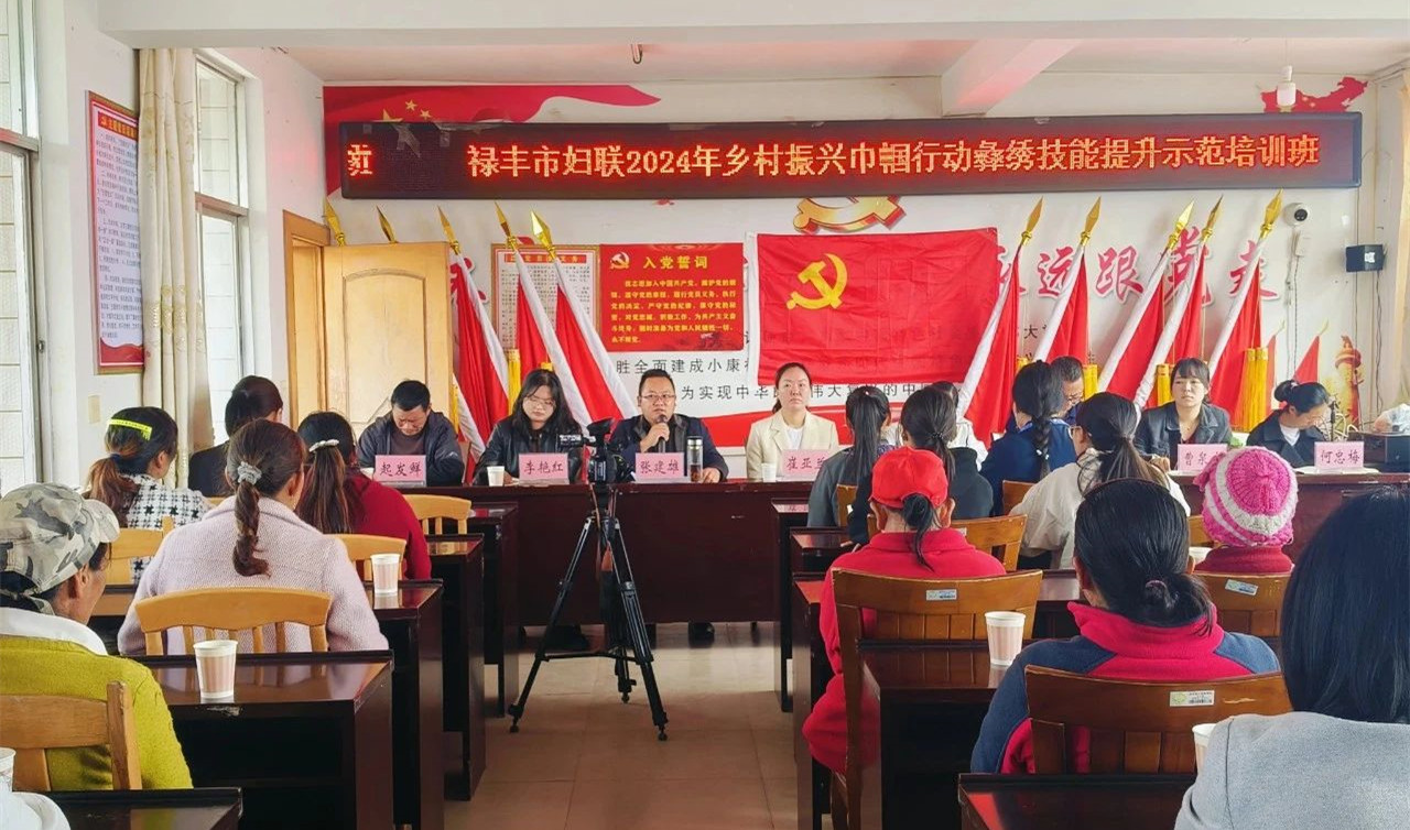 近日,由禄丰市妇联、禄丰市人力资源和社会保障局、高峰乡党委政府共同举办的禄丰市2024年乡村振兴巾帼行动彝绣技能提升示范培训班上,州级非遗传承人、市妇联执委张有芳和市级非遗传承人赵美秀结合各自学习彝绣技艺和创新创业经历,把时尚元素与民族文化相融合,现场“手把手”开展刺绣技巧、图案设计、色彩搭配、刺绣产品创新与开发、市场营销与推广等全方位培训。60余名参加培训的彝绣带头人、彝绣爱好者和彝绣女能手听得津津有味,通过一针一线传承“指尖技艺”、绣出美好生活,逐步实现从传统思想观念向就业创业理念的转变、从“指尖技艺”到“指尖经济”的全面提升。
