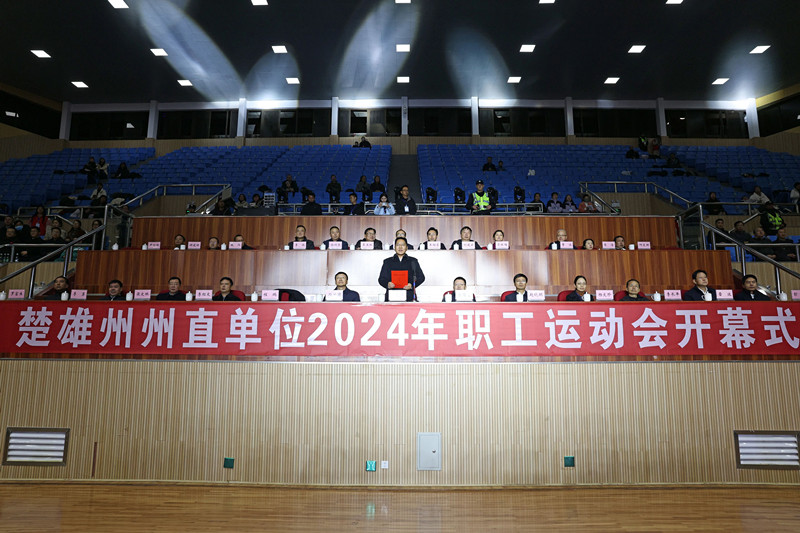 开幕式上,伴随着《歌唱祖国》的歌声,国旗队、语录牌方阵入场。随后,在《运动员进行曲》高亢的旋律中,各参赛队代表依次入场,干部职工精神抖擞,迈着矫健的步伐步入开幕式现场。运动员和裁判员代表分别宣誓。文体节目展演中,活力四射的《彝族花鼓舞》《广播体操》《左脚舞》《啦啦操》轮番上演,将现场气氛推向高潮。 本届运动会由州委、州政府主办,州政府办公室、州教育体育局承办,州委州直机关工委、州机关事务局、州总工会、州体育总会协办,旨在进一步加强州直单位之间的沟通交流,提高干部职工的身体素质,丰富职工文化生活,推进和谐机关建设,引导州直单位广大干部职工树牢“辛勤努力工作,健康快乐生活”的理念,攻坚克难、团结奋斗,为全州高质量发展注入团结协作、昂扬向上的蓬勃动力。