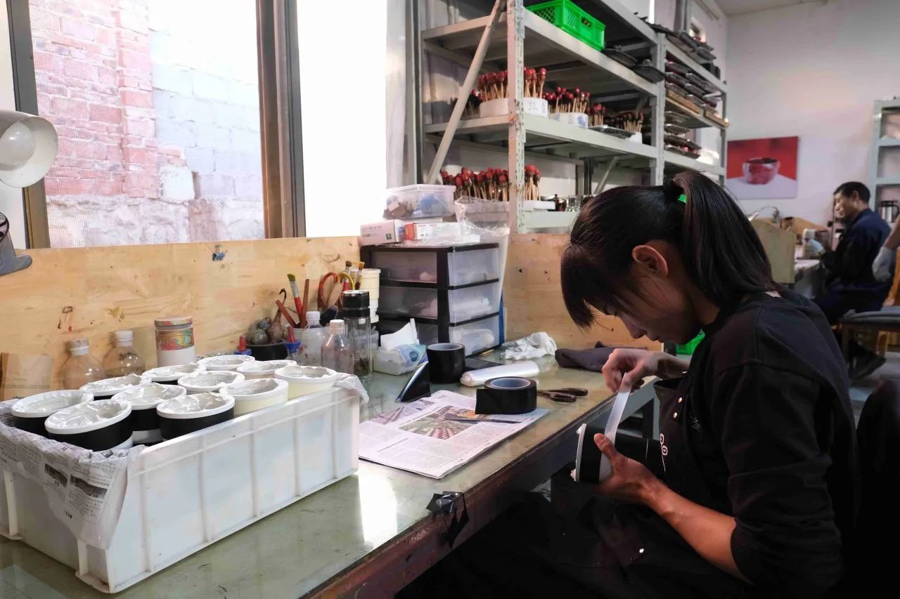 一个产业留住乡愁 多年来,李俊锋精心培养了一支设计一流、技术过硬的团队,还招募了许多当地村民作为技术成员。 在漆园,每天都有一批工艺师和工人在车间里加工不同的工艺品。从事漆器工作两年多的杨丽梅在工作台上熟练地操作着,和漆园的大部分人一样,就近获得收入、照顾家人,还有对漆器的喜爱。“制作漆器需要经过漫长的时间,当漆器从自己手上一点一点做出来时,我心里满是成就感,为自己感到自豪。”对杨丽梅来说,漆器创作已然成为自己的事业。