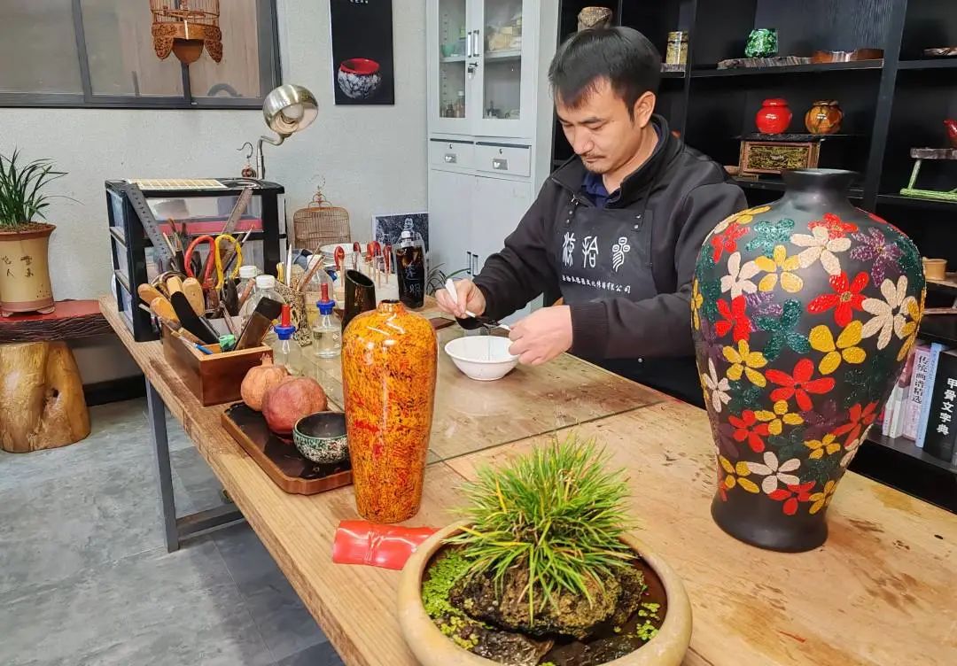 在李俊锋的努力下,公司从第一批300件加工订单到如今每年加工量突破万件,为当地村民提供30多个就业岗位,2023年销售额过千万元,公司发展成为云南省内唯一能够批量化生产纯手工漆器的企业,漆园化身为禄金村一道亮丽的风景线和一张闪亮的文化名片,越来越多的游客和收藏家慕名而来。 留住乡愁,让美好如“漆”而至。当前,李俊锋正探索在禄金村建设非遗·大漆乡村艺术馆。“希望通过乡村艺术馆这个平台,让大漆这一传统艺术焕发新生,带动更多青年返乡创业,助推乡村振兴。”李俊锋说。 (楚雄日报) |