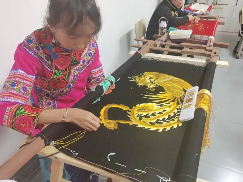 新时代民族网讯(民族时报记者 陈明海)新颖别致的香水挂件,色彩鲜艳的彝绣水杯,灵动鲜活的孔雀书签,精致实用的首饰木盒……近年来,双柏县加快彝绣传统文化创造性转化,全面激发彝绣产业发展活力,让传统彝绣实现传承创新,久经风霜的老手艺“碰撞”着新时尚,展现出富有时代气息的多元魅力。 走进位于双柏县城的云南彝笙源文化发展有限公司刺绣车间,手法娴熟的绣娘们针线翻飞,黑底金线的凤凰栩栩如生,吉祥喜庆的婚书逐字绣出,一针一线尽显独特的韵味,她们正在赶制一批新的订单。结合当地的虎文化和绿孔雀文化,彝笙源文化发展有限公司将传统纹样与时尚元素相融合,开发出服装、胸针、荷包、水杯等十多个品类的彝绣产品,特别是以绿孔雀元素为主的主题系列香包,更是深受市场青睐。公司总经理张黎敏在接受记者采访时说:“文化的生命力在传承,更在创新。这些产品都是我们自己设计制作的,主要是把传统元素的图样、配色提取出来,运用到现在的产品当中。今后还将对产品进行完善,不断地创新,还想通过电商平台,让我们的绣娘自己直播带货,同时也会对外不断地寻求更多的订单,让绣娘有更多的工作、更高的收入”。该公司是双柏县去年招引进来的新企业,秉承着走好传承与创新并重的发展思路,公司从去年5月份运营至今,短短7个多月的时间,已实现产值60多万元,每年可带动50多名绣娘人均增收1万元以上。