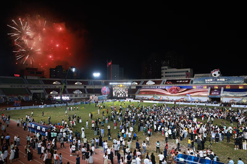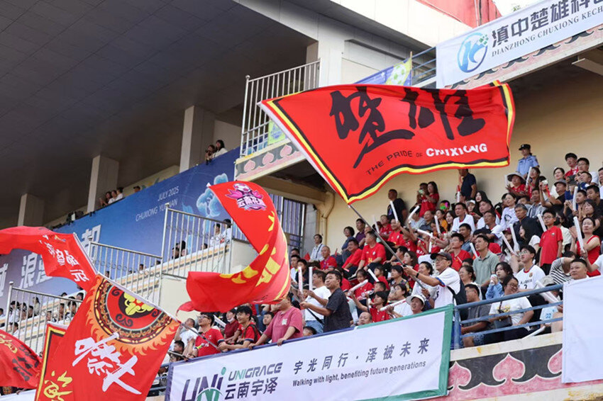 赛场搭台,让交往自然发生 来自全国的参赛队伍、楚雄州10县市及16乡镇的方队齐聚赛场,球衣是最鲜明的标识,热爱是共同的语言。球员们在战术沟通中磨合出默契,替补席上递水、拍肩的动作自然流畅;观众席上,不同口音的加油声交织成网,为每一个精彩瞬间共同欢呼,陌生感在欢呼声中悄然消融。