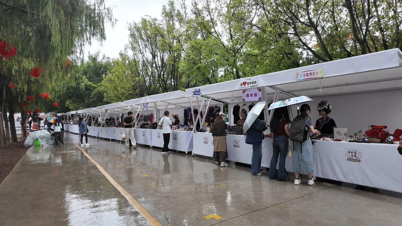 活动现场,一场融合视觉与味觉的文化盛宴惊艳亮相。彝绣动态市集展上,来自楚雄州10个县市的非遗代表性传承人带来了各式精美的彝绣作品与非遗文创产品,琳琅展品与特色美食相映成趣,引得游客纷纷驻足观赏、细细品味。