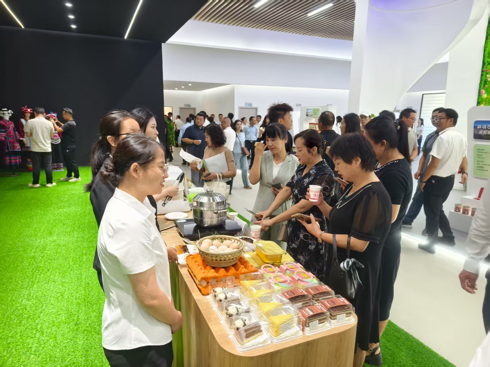 启动仪式结束后,与会嘉宾共同深入基地开展观摩学习,实地探访直播场景搭建、农产品展示布局及包装设计成果,直观感受“线上线下融合”模式的运营实效。现场同步举行的企业合作签约仪式上,多家农业企业、电商平台及金融机构达成合作意向,涵盖直播带货、供应链共建、品牌联合推广等多个领域;随后的企业产品推介环节,楚雄州特色果蔬、粮油、茶业及民族手作农特产品等集中亮相,通过生动细致的讲解与沉浸式场景化展示,不仅全方位呈现了高原特色物产的生态品质与独特优势,更深度挖掘并传递了产品背后蕴含的地域文化内涵,让在场嘉宾直观感受到楚雄高原特色农业的深厚底蕴与发展活力。