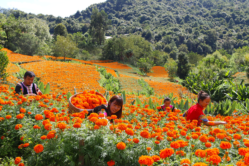 科学规划织就 “全季采摘链” 充分利用立体气候资源禀赋,进行科学规划,实现了特色果蔬采“四季不断档”。春季,推出春茶采摘体验项目,游客可亲手采摘鲜嫩的茶叶,参与茶叶制作全过程,感受茶文化的独特魅力;夏季,桃、李、芒果陆续成熟,硕果累累的果园、菜园成为游客的乐园;秋季,五千亩万寿菊吸引游客打卡,金色花海令人流连;冬季,青蚕豆、人参果、小黄瓜的上市为市场注入暖意。截至目前,全镇建成生态采摘基地7个,瓜果蔬菜种植面积达6500余亩,吸纳周边村民1400余人就业,打造了“四季有景、四季有产”的循环链条。